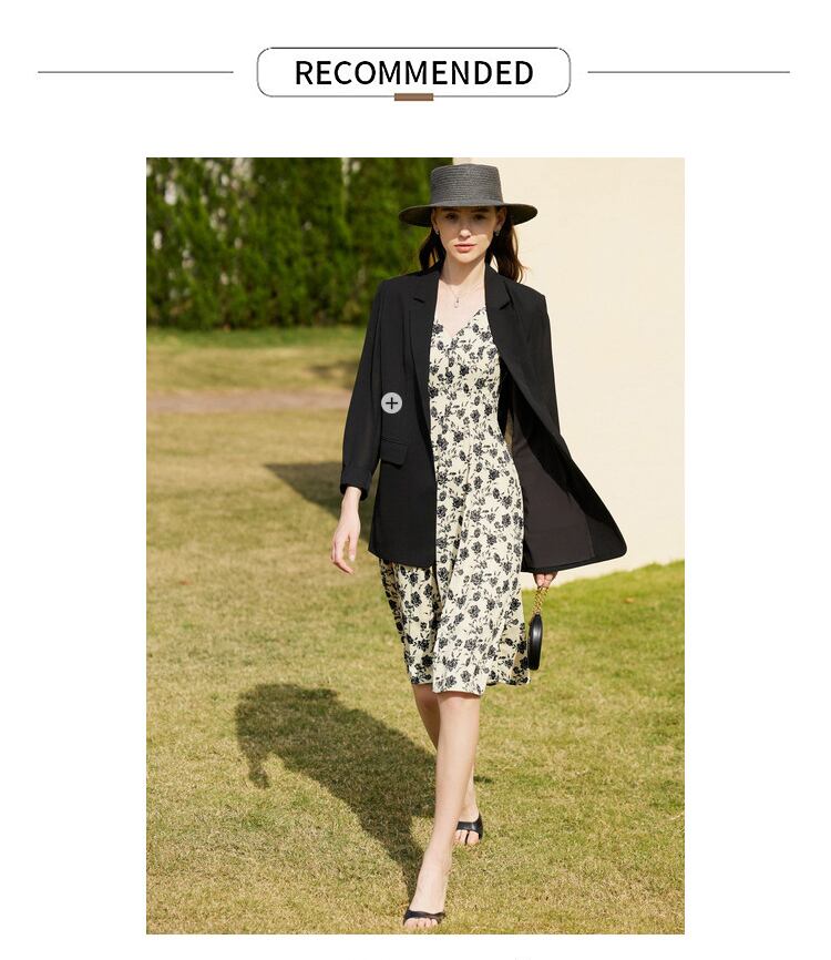 AMII ミニマリズム レディース ドレス 春 シック Vネック パフスリーブ ローズ プリント Aライン ストレート シフォン Vestidos 12322006 スプリング 春物 | twelve