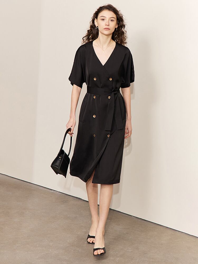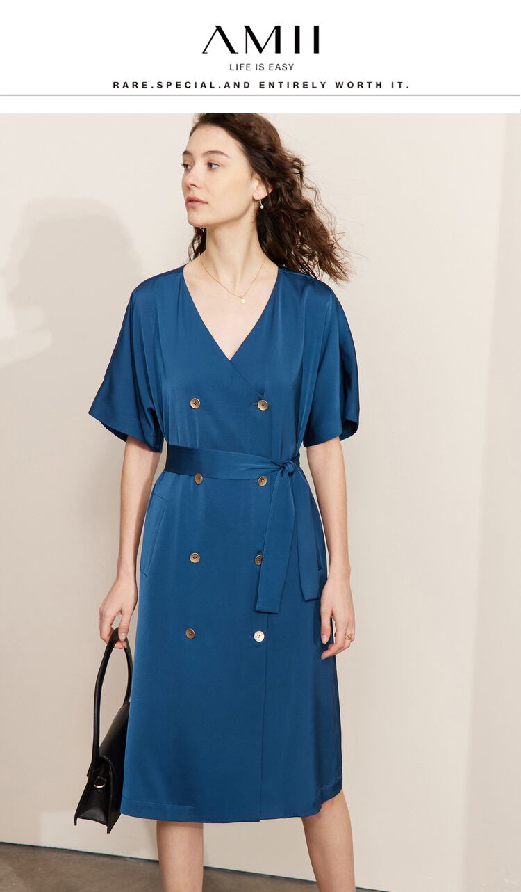 AMII ミニマリズム夏 Vestidos オフィスレディ半袖 V ネックレディースドレス 12342204 ショート ハーフスリーブ サマー 夏物 Vネック 会社 学校 通勤や通学にも | twelve