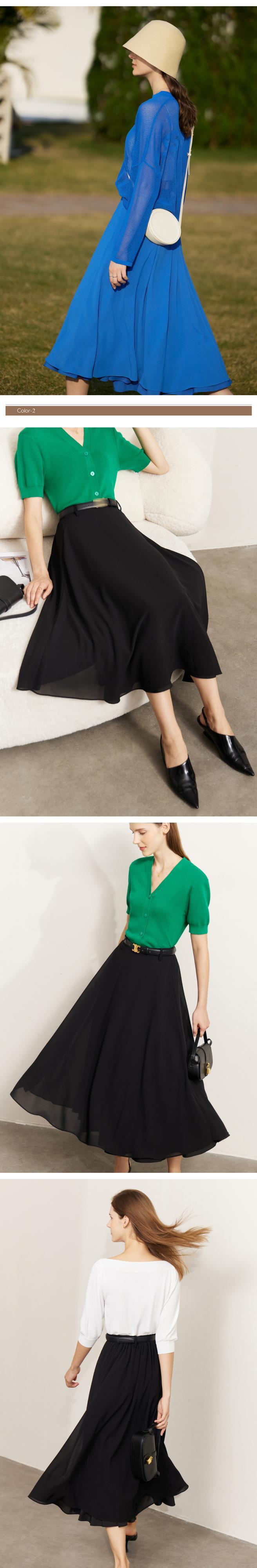 AMII ミニマリズムスカートシックシフォン A ライン春オフィスレディソリッドブラックロングスカート 72321002 スプリング 春物 Aライン ソリッドカラー 会社 学校 通勤や通学にも | twelve