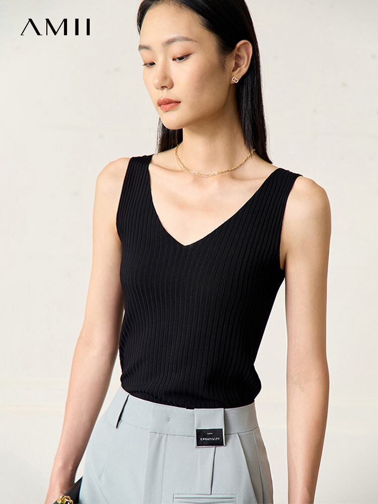 AMII ミニマリズムニットキャミソール & ベスト夏オフィスレディスリム弾性トップ 12342453 エラスティック 伸縮 サマー 夏物 ソリッドカラー 会社 学校 通勤や通学にも | twelve