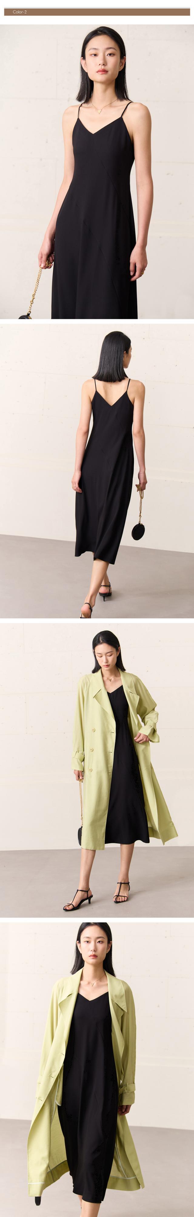 AMII ミニマリズム夏休みスタイル シフォン V ネック キャミソール ドレス スリム A ライン オフィス レディー Vestidos 12342028 サマー 夏物 Vネック Aライン 会社 学校 通勤や通学にも | twelve