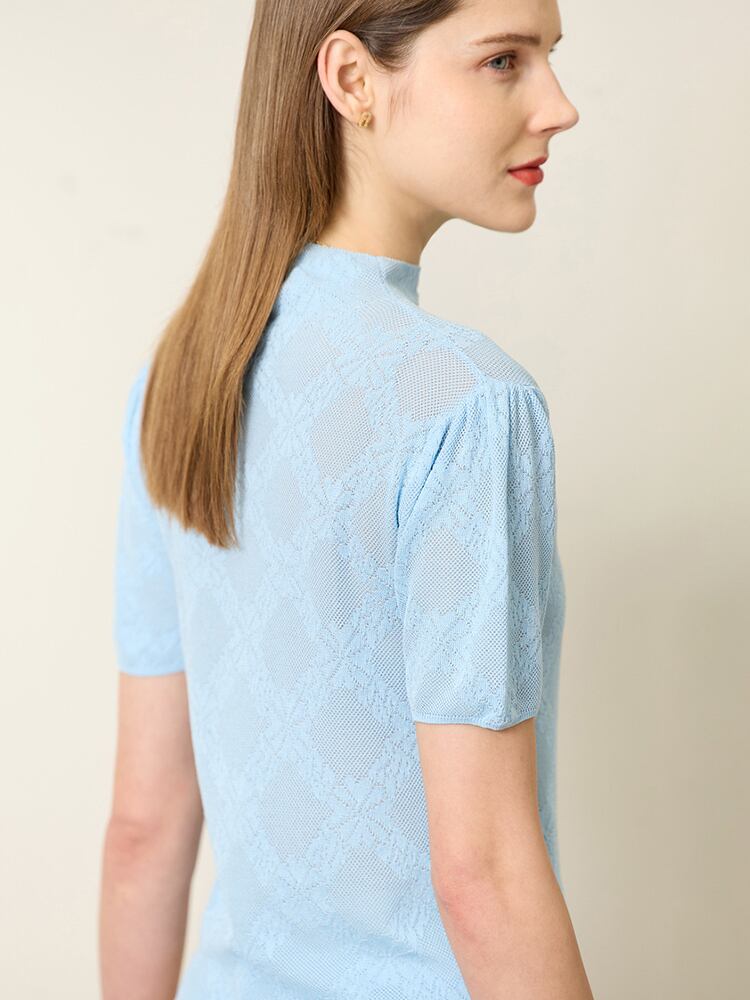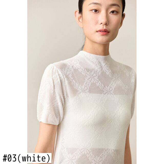 AMII ミニマリズム オフィス レディー レディース 花柄 半袖 スリム ニット プルオーバー トップス ニットウェア 72352008 ショート ハーフスリーブ 会社 学校 通勤や通学にも | twelve