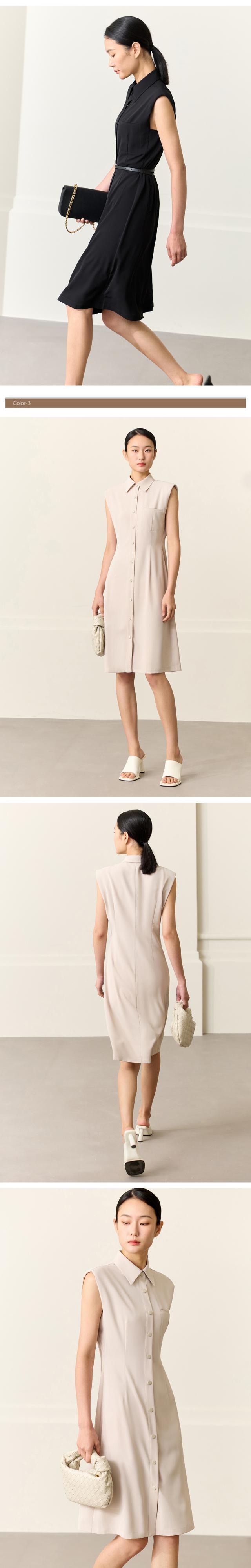 AMII ミニマリズムソリッドターンダウンカラードレス夏ノースリーブ A ラインオフィスレディ Vestidos 12372103 サマー 夏物 Aライン ソリッドカラー 会社 学校 通勤や通学にも | twelve