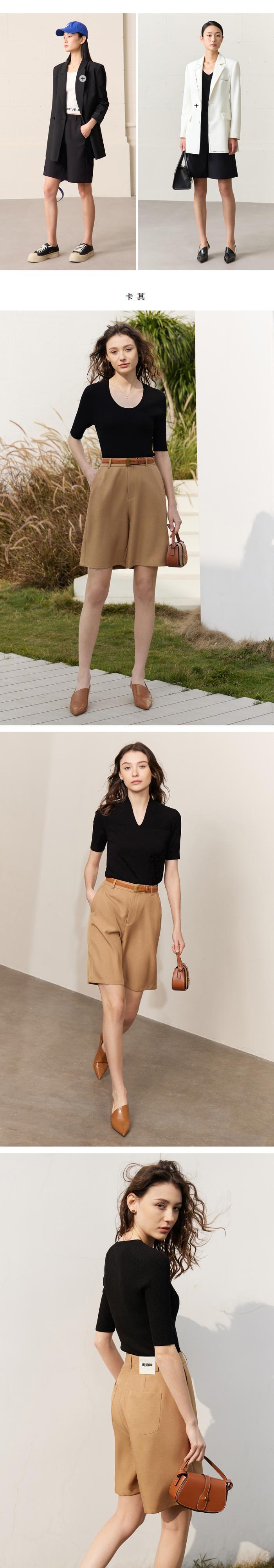 AMII ミニマリズム レディース ショーツ 夏 万能 オフィス レディー ワイドレッグ ストレート ソリッド ブラック パンツ 12341063 サマー 夏物 ブルマー ワイドパンツ ソリッドカラー 会社 学校 通勤や通学にも | twelve
