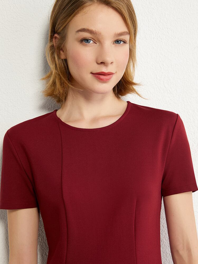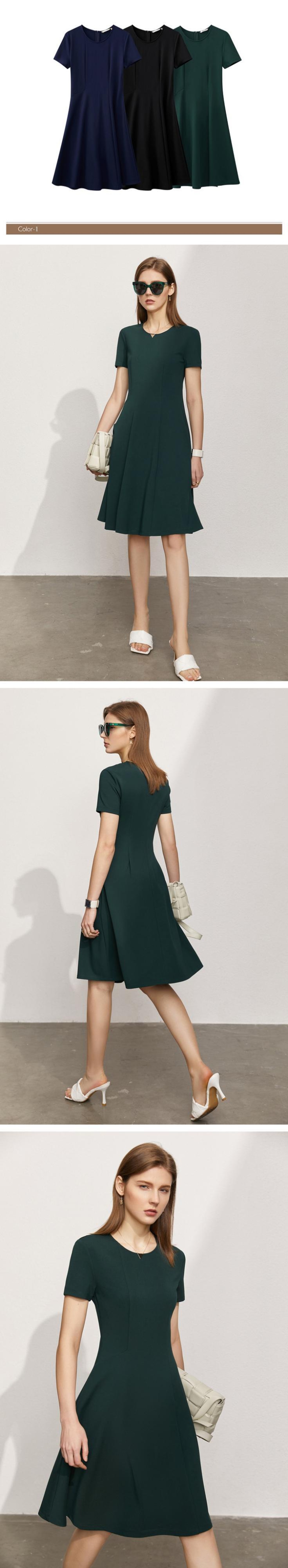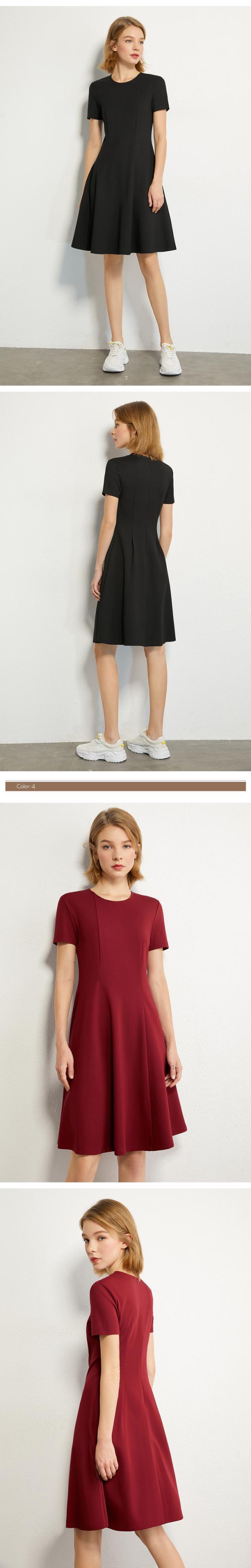 AMII ミニマリズムドレス夏フレンチスリム弾性半袖 A ライン Vestidos 12322158 ショート ハーフスリーブ エラスティック 伸縮 サマー 夏物 Aライン ソリッドカラー | twelve