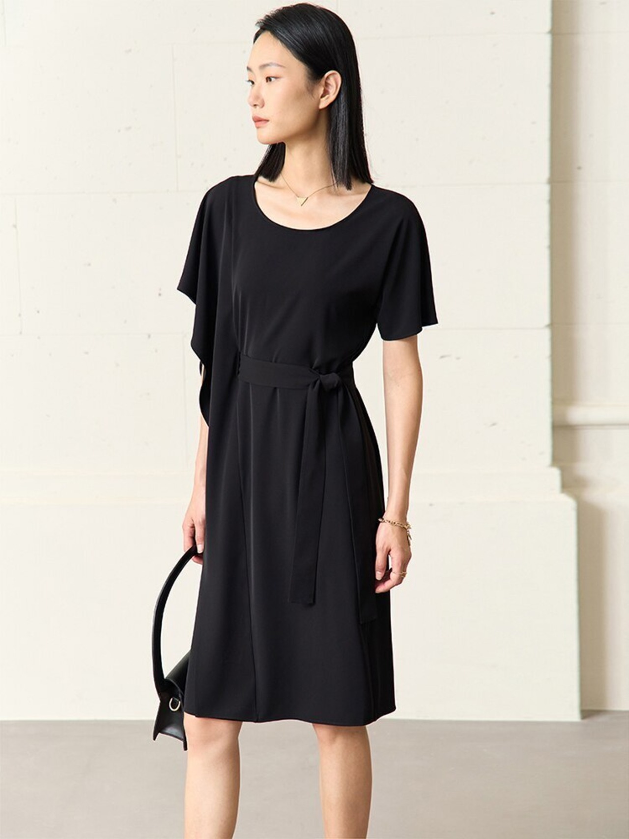 AMII ミニマリズムサマードレス非対称フレンチ Vestidos オフィスレディフリルベルト黒ドレス 72322010 ブラック ラッフル 夏物 ハーネス 会社 学校 通勤や通学にも | twelve