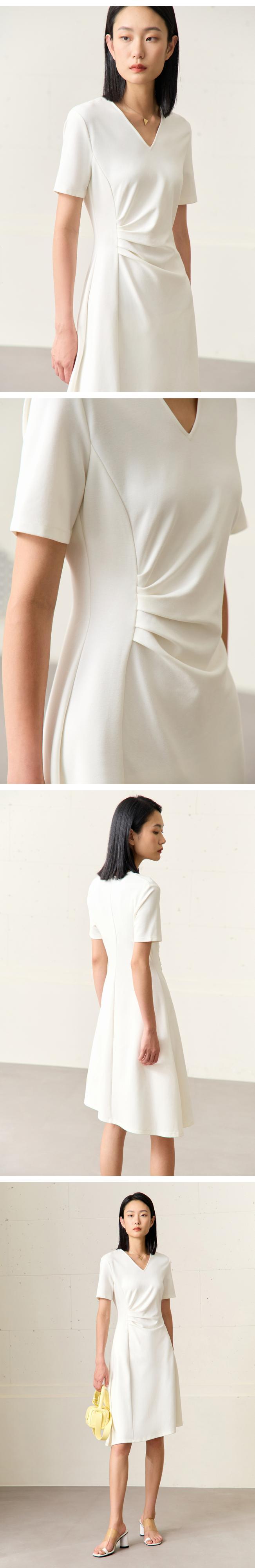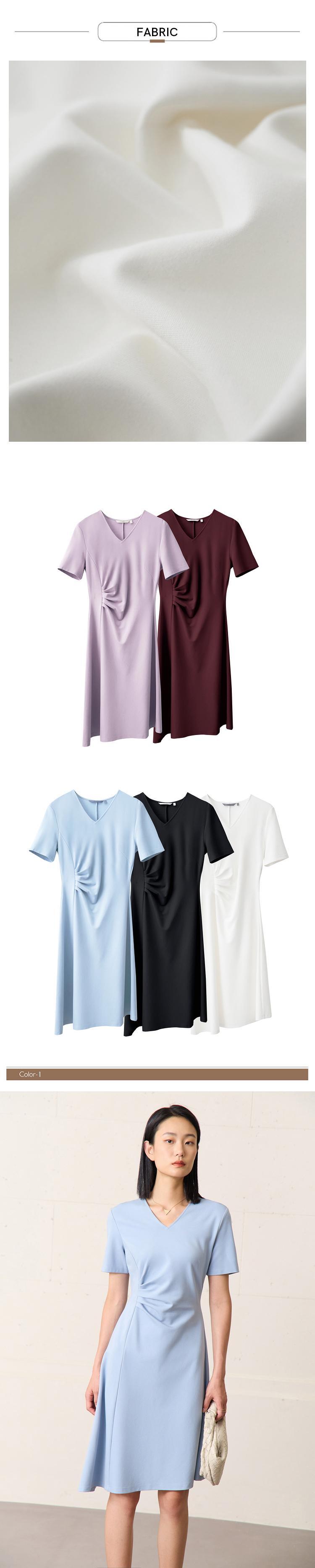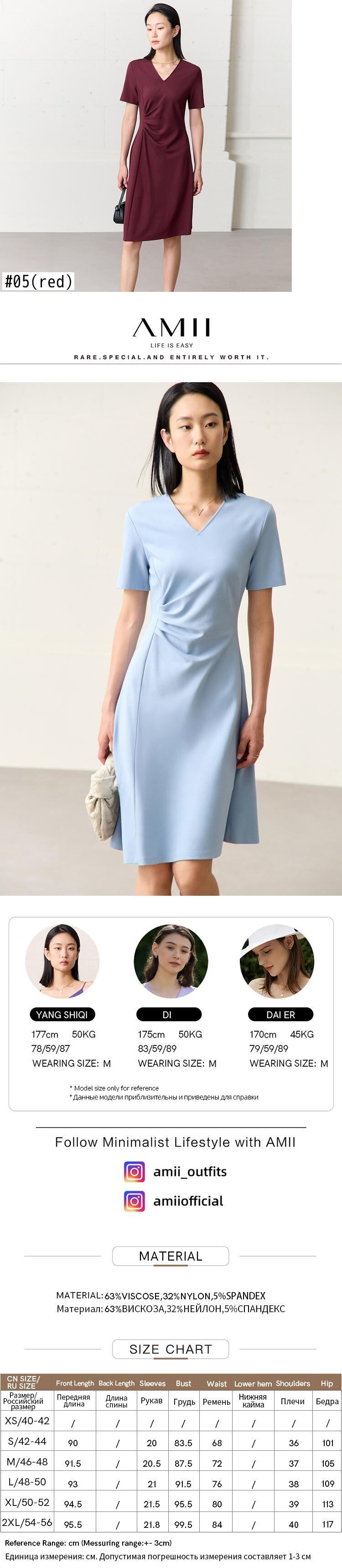 AMII ミニマリズムドレス夏スリムシック V ネック弾性 A ライン Pullovs Vestidos 12342374 エラスティック 伸縮 サマー 夏物 Vネック Aライン ソリッドカラー | twelve