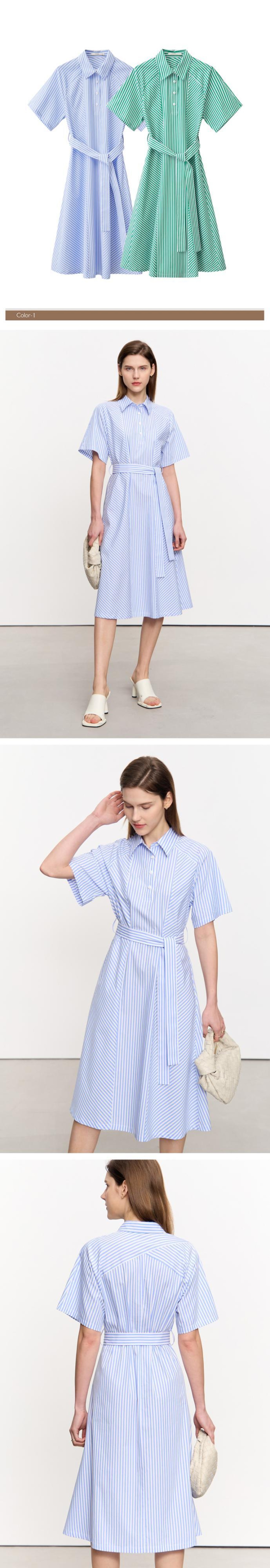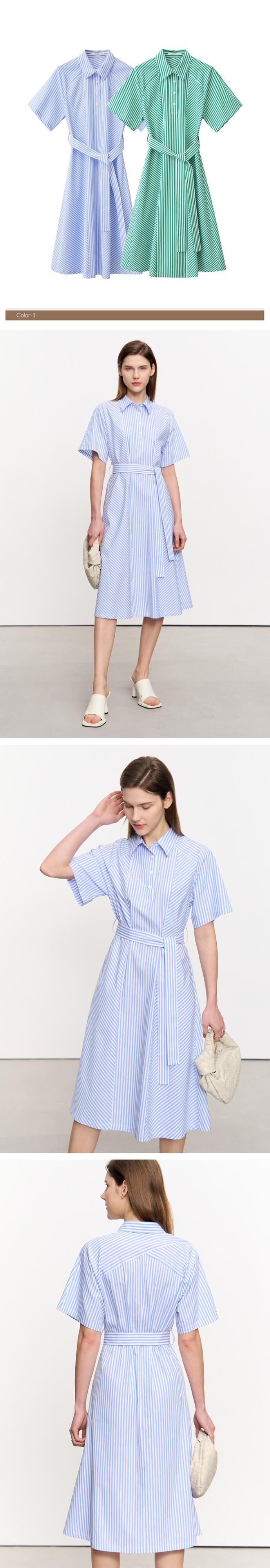 AMII ミニマリズムレディースドレスベルトアートルーズストライプ夏綿 100% オフィスレディポロネック Vestidos 12352047 コットン サマー 夏物 ハーネス 会社 学校 通勤や通学にも | twelve