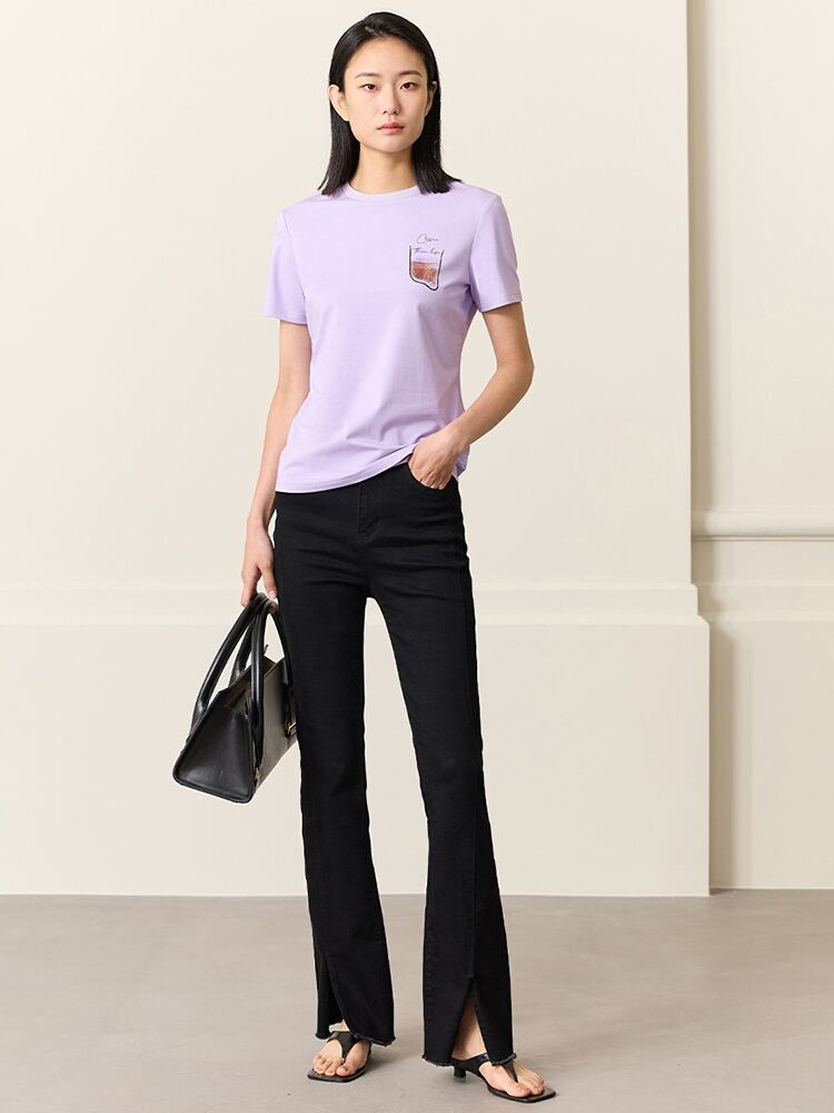 AMII ミニマリズム多用途トップ夏 O ネック半袖オフィスレディシックプリント T シャツ 12322047 ショート ハーフスリーブ サマー 夏物 Oネック Tシャツ 会社 学校 通勤や通学にも | twelve