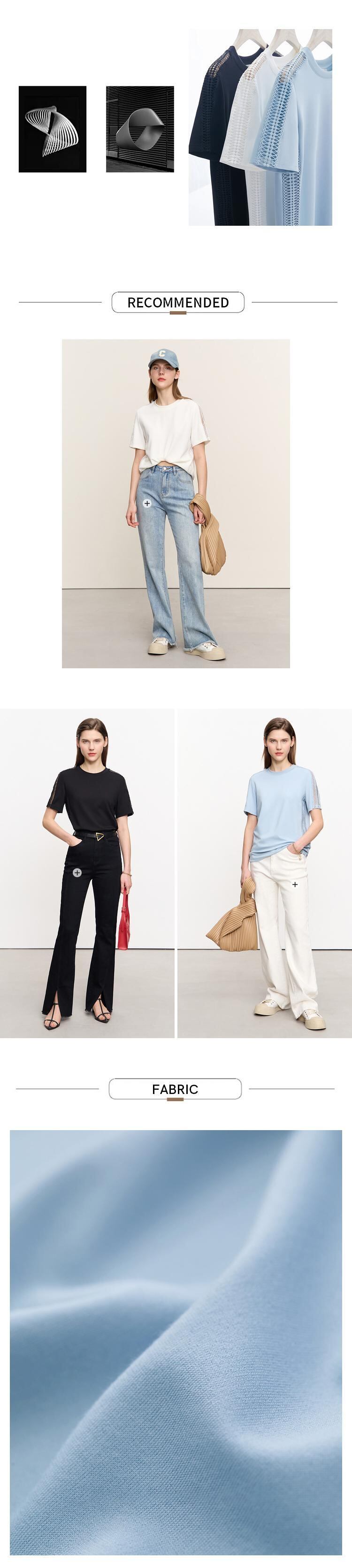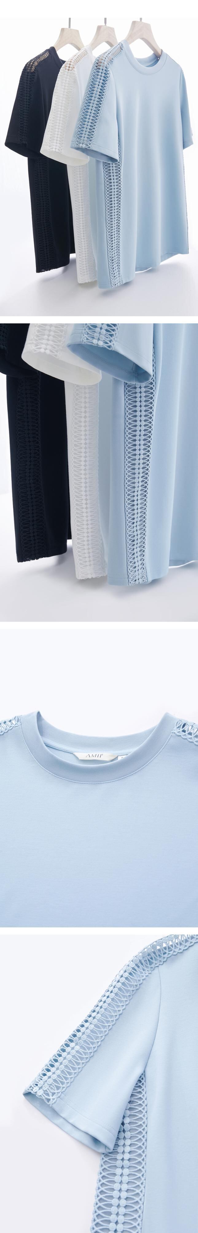 AMII ミニマリズム トップストレート中空アウト パッチワーク夏オフィス レディー半袖 Tシャツ 12342439 ショート ハーフスリーブ サマー 夏物 会社 学校 通勤や通学にも | twelve