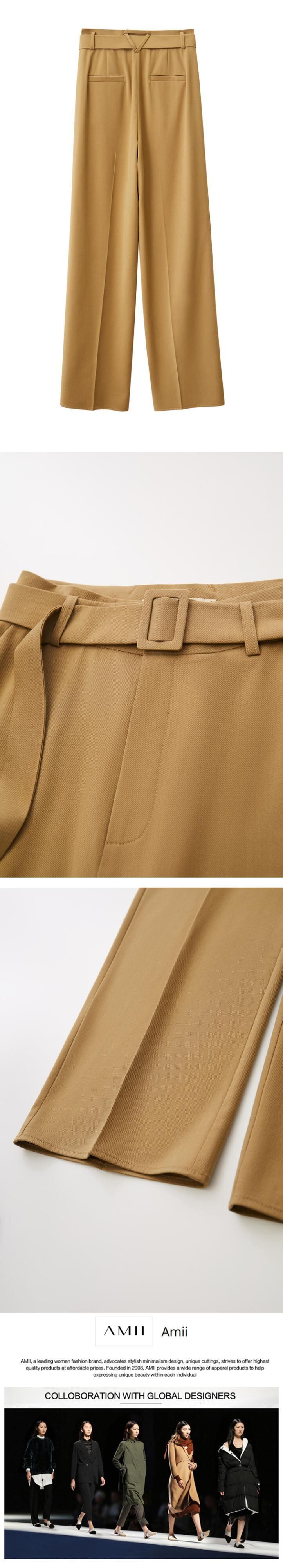 AMII ミニマリズム レディース パンツ オフィスレディ 万能 春 無地 ベルト付き ストレート パンタロン 72351004 スプリング 春物 ハーネス ソリッドカラー 会社 学校 通勤や通学にも | twelve