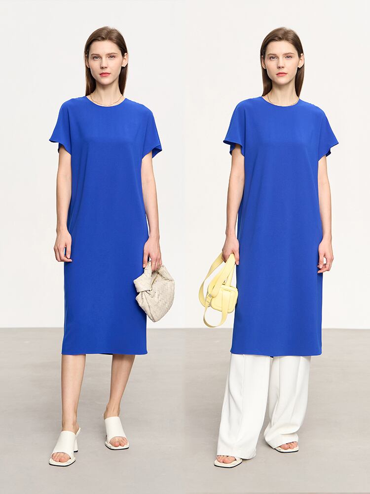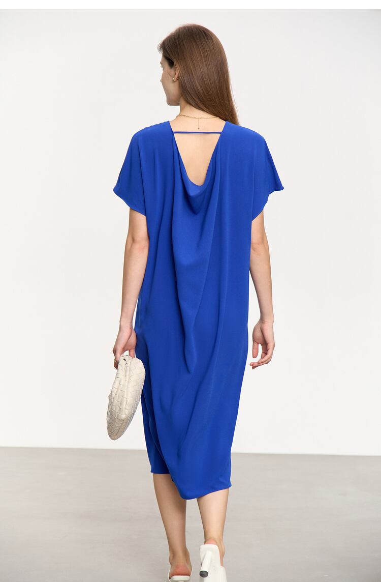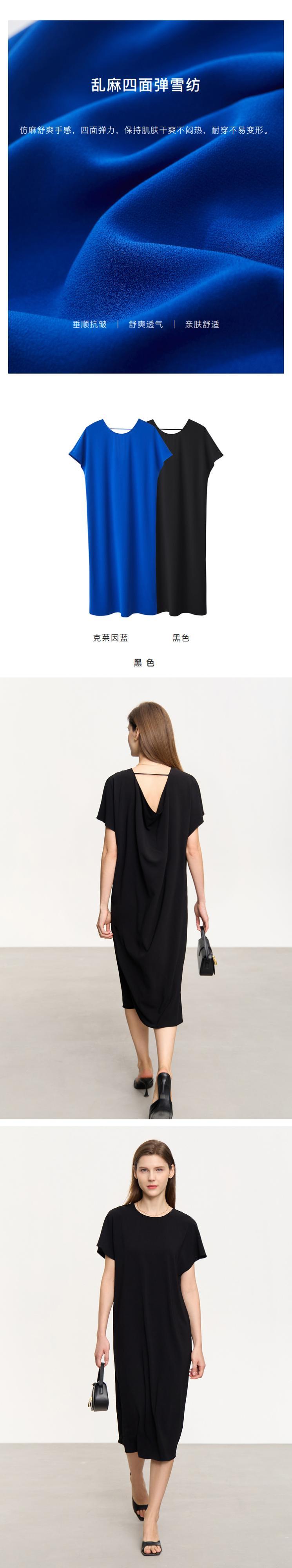 AMII ミニマリズム夏ドレスソリッドシフォンルーズオフィスレディシックバックレスロング Vestidos 12342459 サマー 夏物 ソリッドカラー 会社 学校 通勤や通学にも | twelve