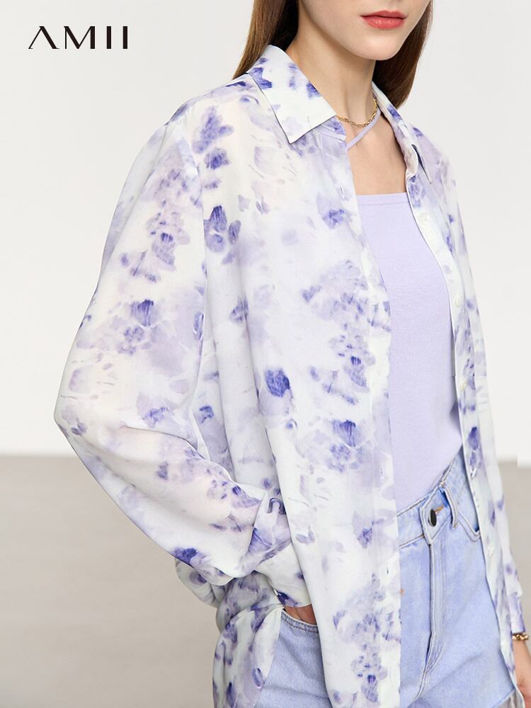 AMII ミニマリズム サマー オフィス レディー ルーズ プリント シャツ & ブラウス シフォン レディース トップス オフィス レディー 12342612 夏物 会社 学校 通勤や通学にも | twelve
