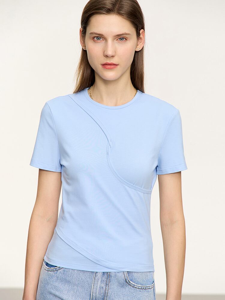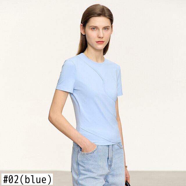 AMII ミニマリズムソリッド Tシャツ夏半袖プルオーバースリムオフィスレディ Tシャツ 12342475 ショート ハーフスリーブ サマー 夏物 ソリッドカラー 会社 学校 通勤や通学にも | twelve