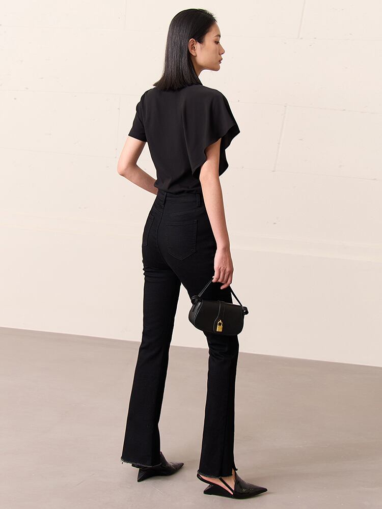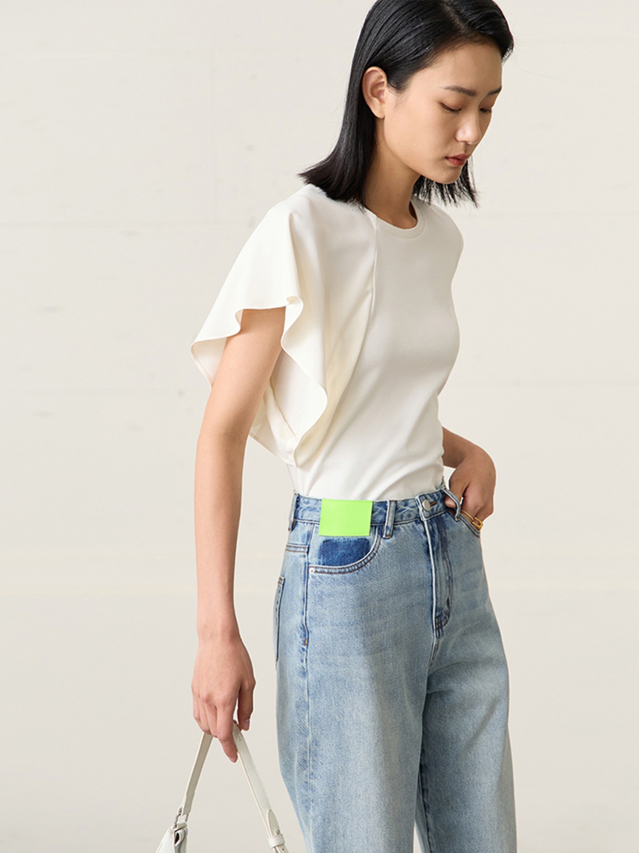 AMII ミニマリズムスリム Tシャツ夏半袖ソリッドパッチワークフリルオフィスレディ Tシャツトップ 72322018 ショート ハーフスリーブ ラッフル サマー 夏物 ソリッドカラー 会社 学校 通勤や通学にも | twelve