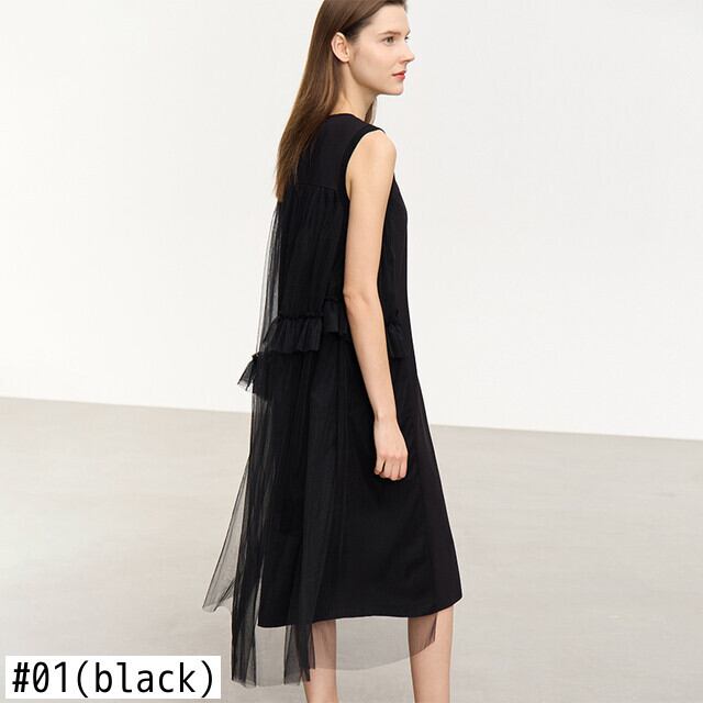 AMII ミニマリズム ダブル メッシュ フリル レディース ドレス ハート刺繍 ノースリーブ オフィス シック レディ Vestidos 12342519 ラッフル 会社 学校 通勤や通学にも | twelve