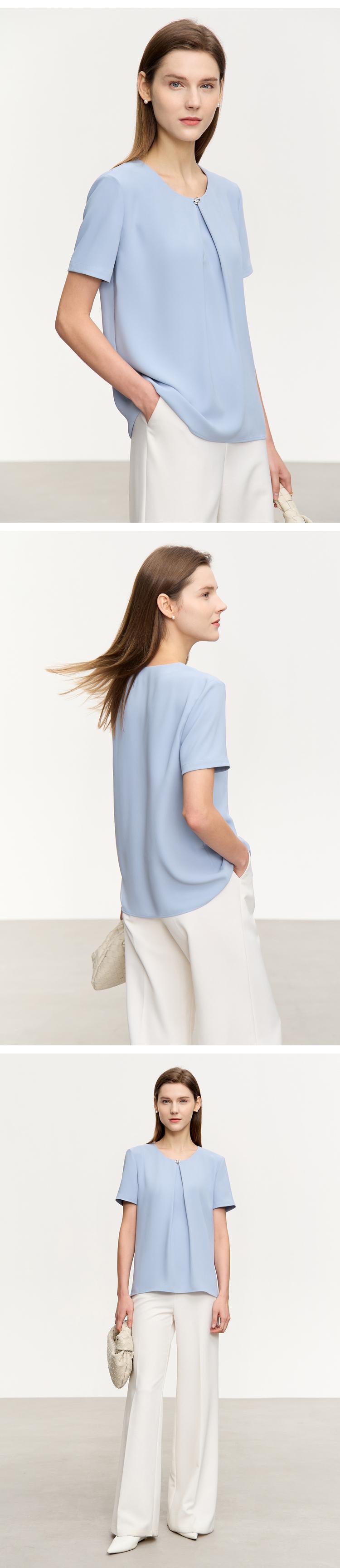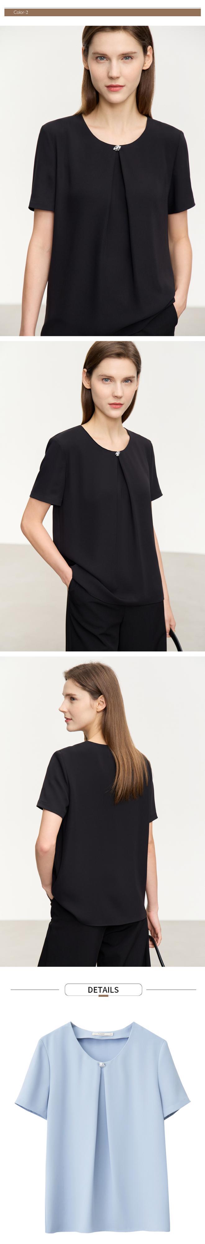 AMII ミニマリズム レディース シフォン トップス 夏 ルーズ アート 半袖 O ネック オフィス レディー 12342615 ショート ハーフスリーブ サマー 夏物 Oネック 会社 学校 通勤や通学にも | twelve