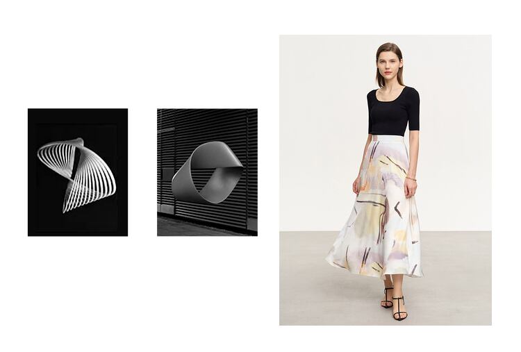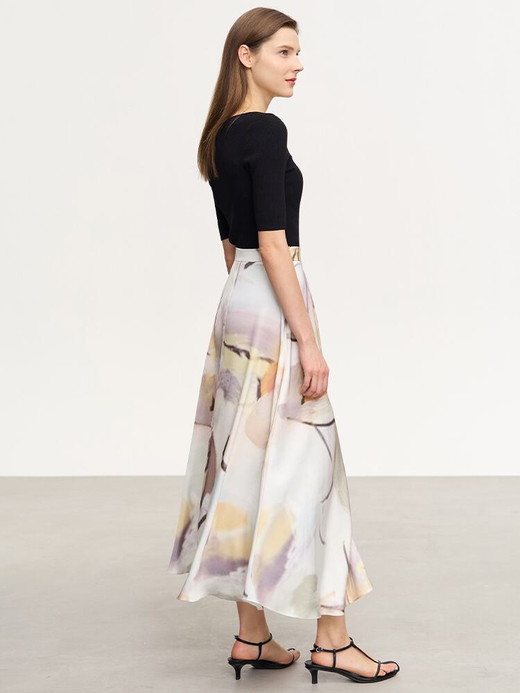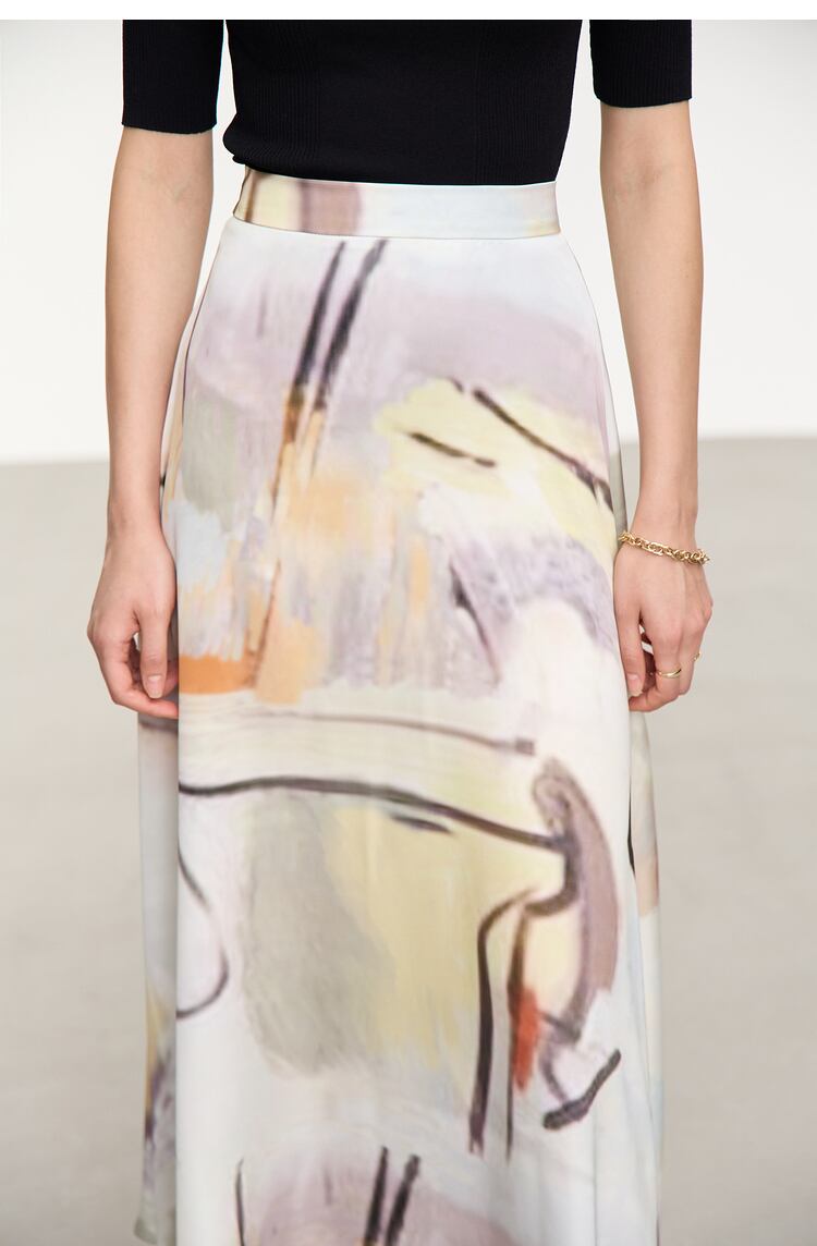 AMII ミニマリズム モダン レディース スカート サマー アート プリント A ライン オフィス レディー ロング スカート 12342468 夏物 Aライン 会社 学校 通勤や通学にも