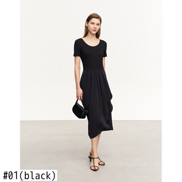 AMII ミニマリズムパッチワークドレス夏ソリッドプルオーバー半袖 Vestidos オフィスレディ 12342386 ショート ハーフスリーブ サマー 夏物 ソリッドカラー 会社 学校 通勤や通学にも | twelve