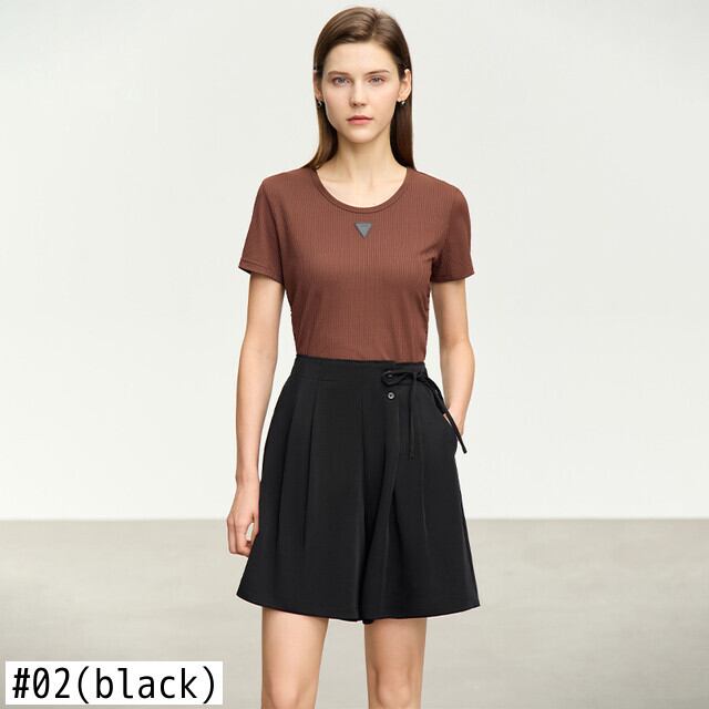AMII ミニマリズム 夏 レディース ショーツ ゆったり 非対称 レースアップ Aライン オールマッチ ワイドレッグ ショートパンツ 12342636 サマー 夏物 ブルマー ワイドパンツ | twelve