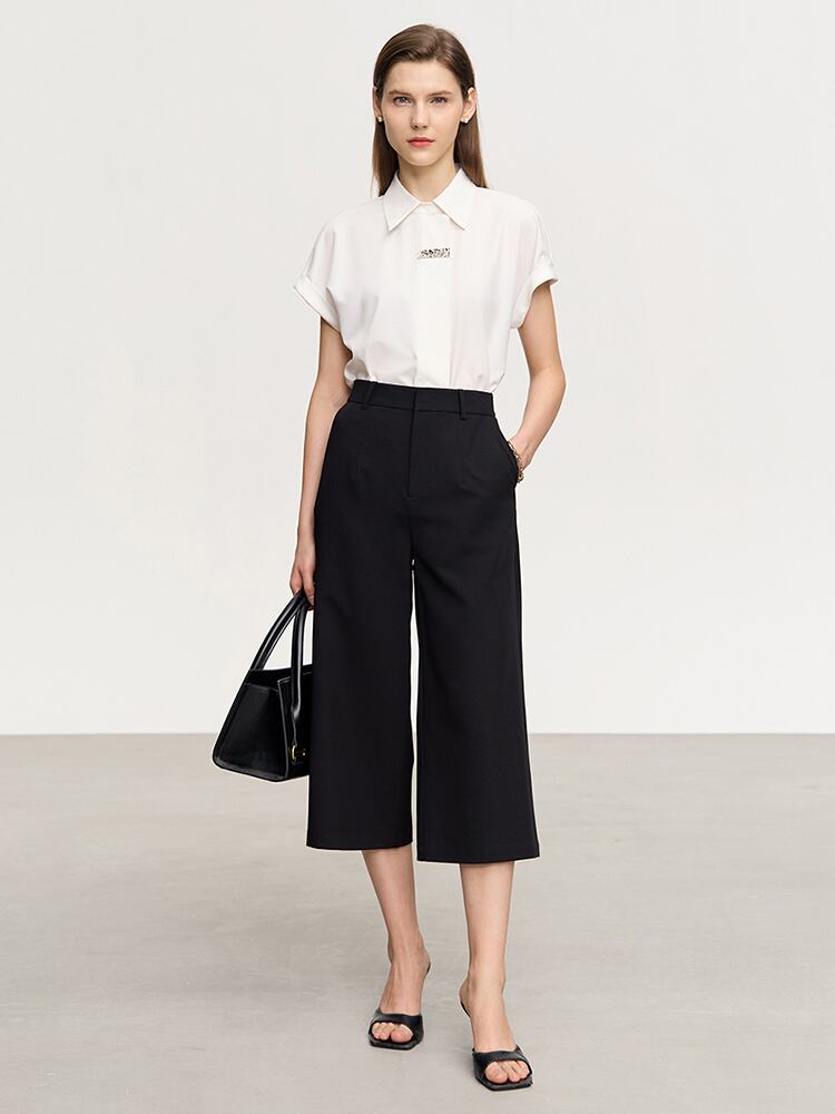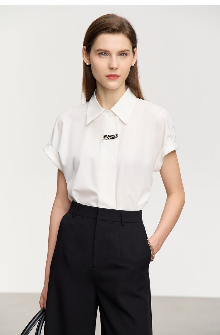 AMII ミニマリズム白人シャツ & ブラウス夏ターンダウン襟半袖オフィスレディルーズトップス 12342607 ショート ホワイト ハーフスリーブ サマー 夏物 会社 学校 通勤や通学にも | twelve