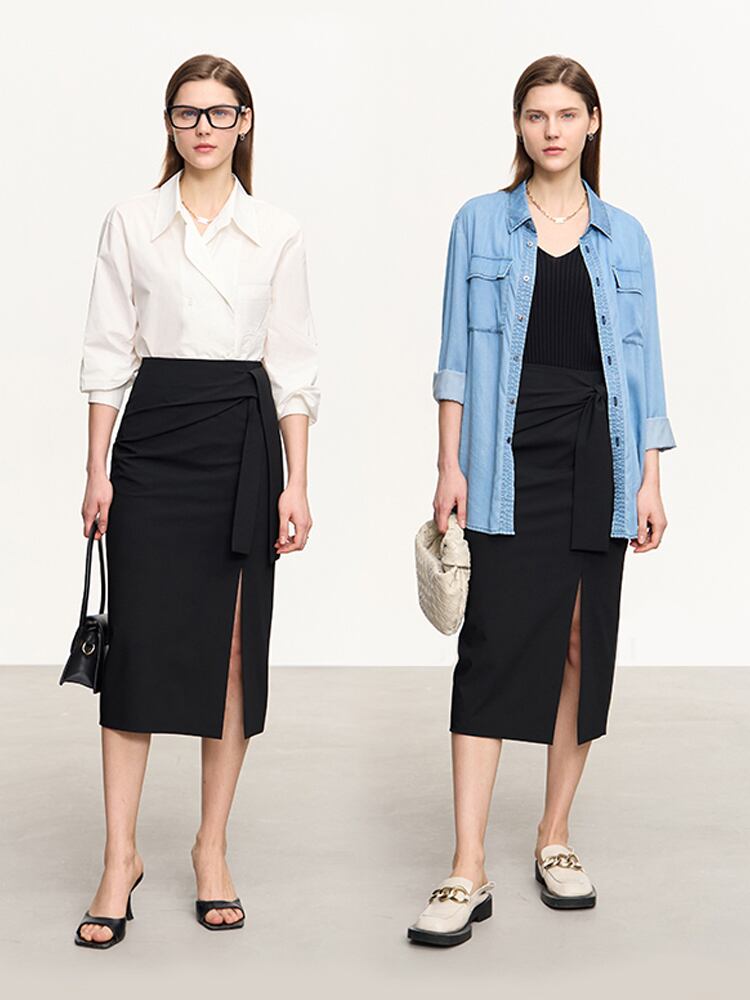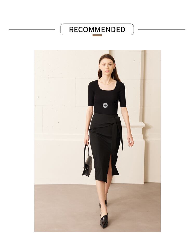 AMII ミニマリスト秋スカートオフィスレディ気質ネクタイ分割ストレート A ラインソリッドスカート 12342411 オータム 秋物 Aライン ソリッドカラー 会社 学校 通勤や通学にも | twelve