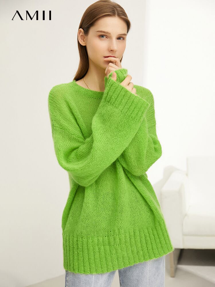 AMII ミニマリズムセーター秋シンプルオフィスレディ怠惰カラー O ネックルーズプルオーバー 12343373 オータム 秋物 Oネック ソリッドカラー 会社 学校 通勤や通学にも | twelve