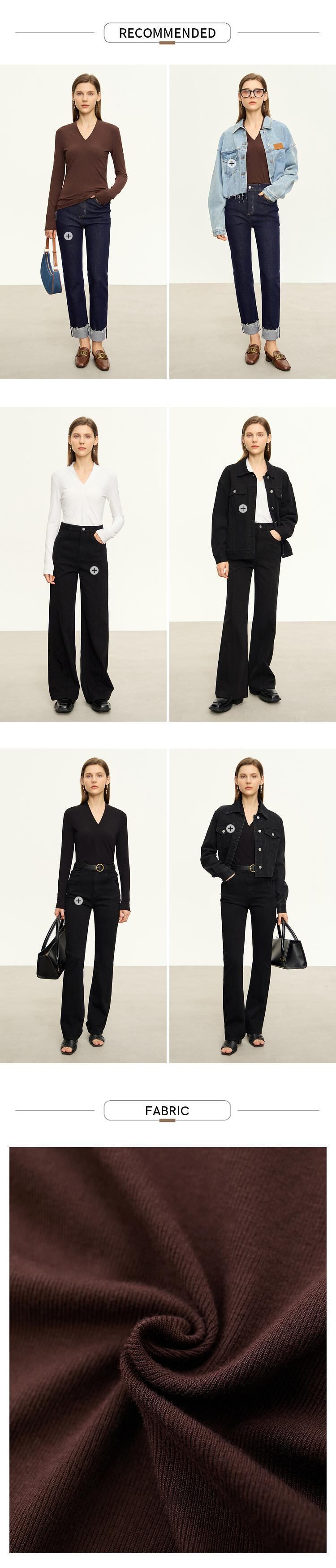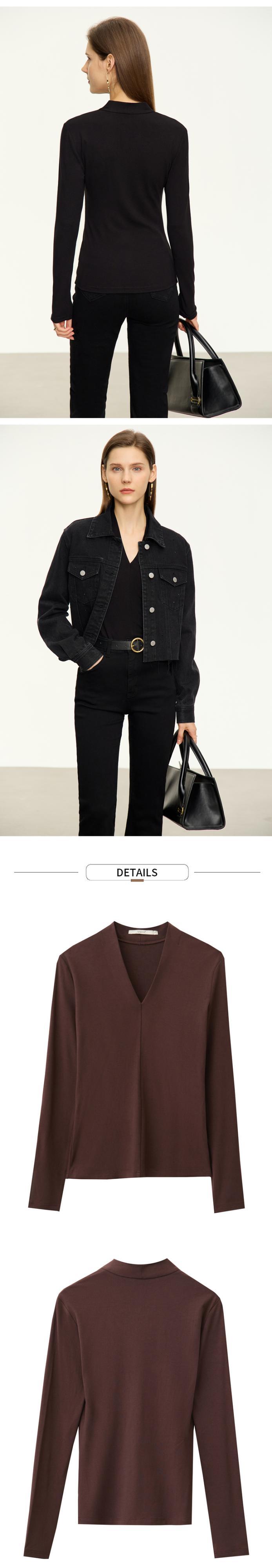 AMII ミニマリスト V ネック Tシャツ弾性トップ秋長袖シンプルスリムオフィスレディ服 12323019 ロング エラスティック 伸縮 オータム 秋物 Vネック ソリッドカラー 会社 学校 通勤や通学にも | twelve