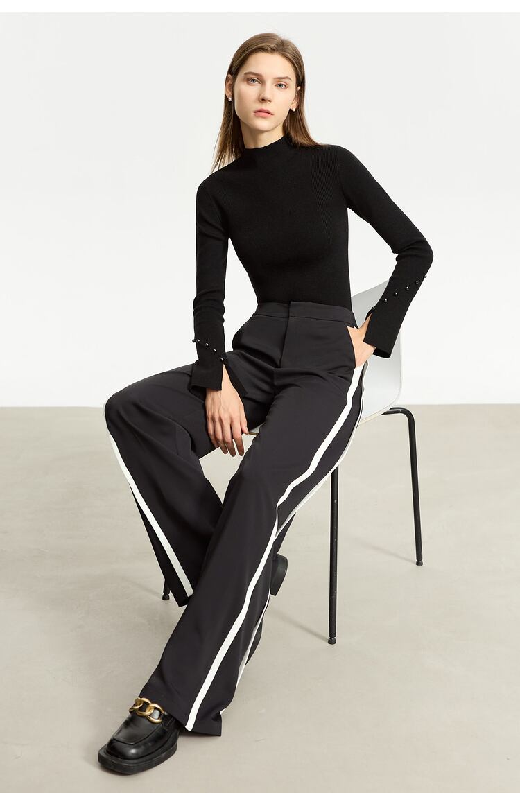 AMII ミニマリストモックネックセーター秋シンプルスリムフィットオフィスレディスプライシングフルトップス 12323053 オータム 秋物 ソリッドカラー 会社 学校 通勤や通学にも | twelve