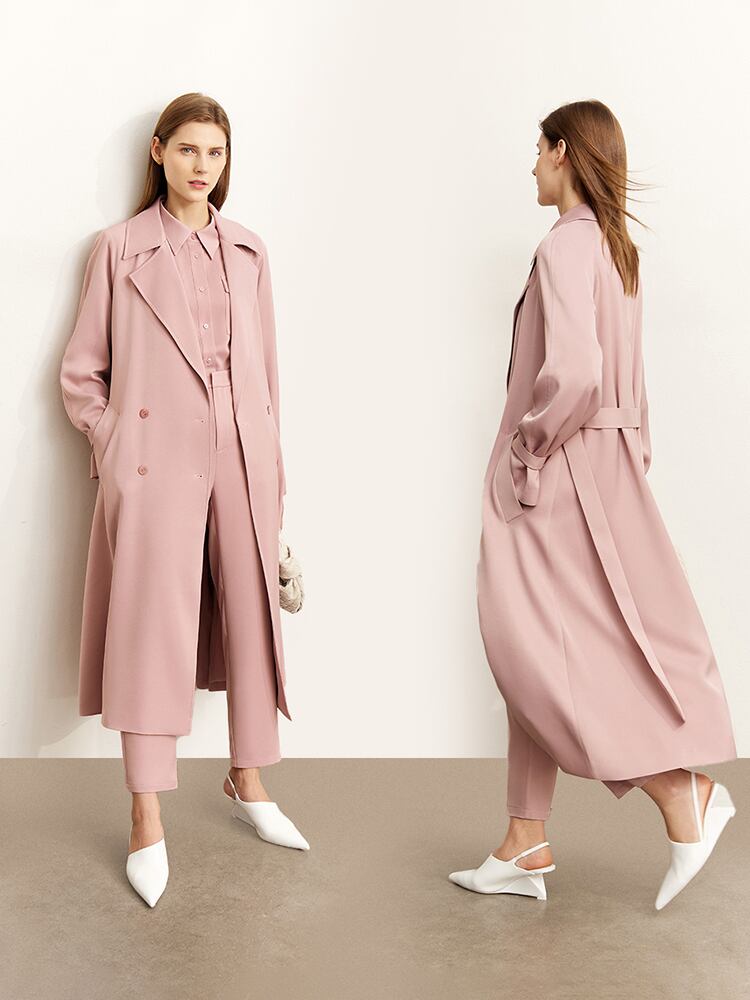 AMII ミニマリスト トレンチ コート レディース 秋 ベルト ロング ソリッド ターンダウン カラー ジャケット 12343434 オータム 秋物 ハーネス ソリッドカラー