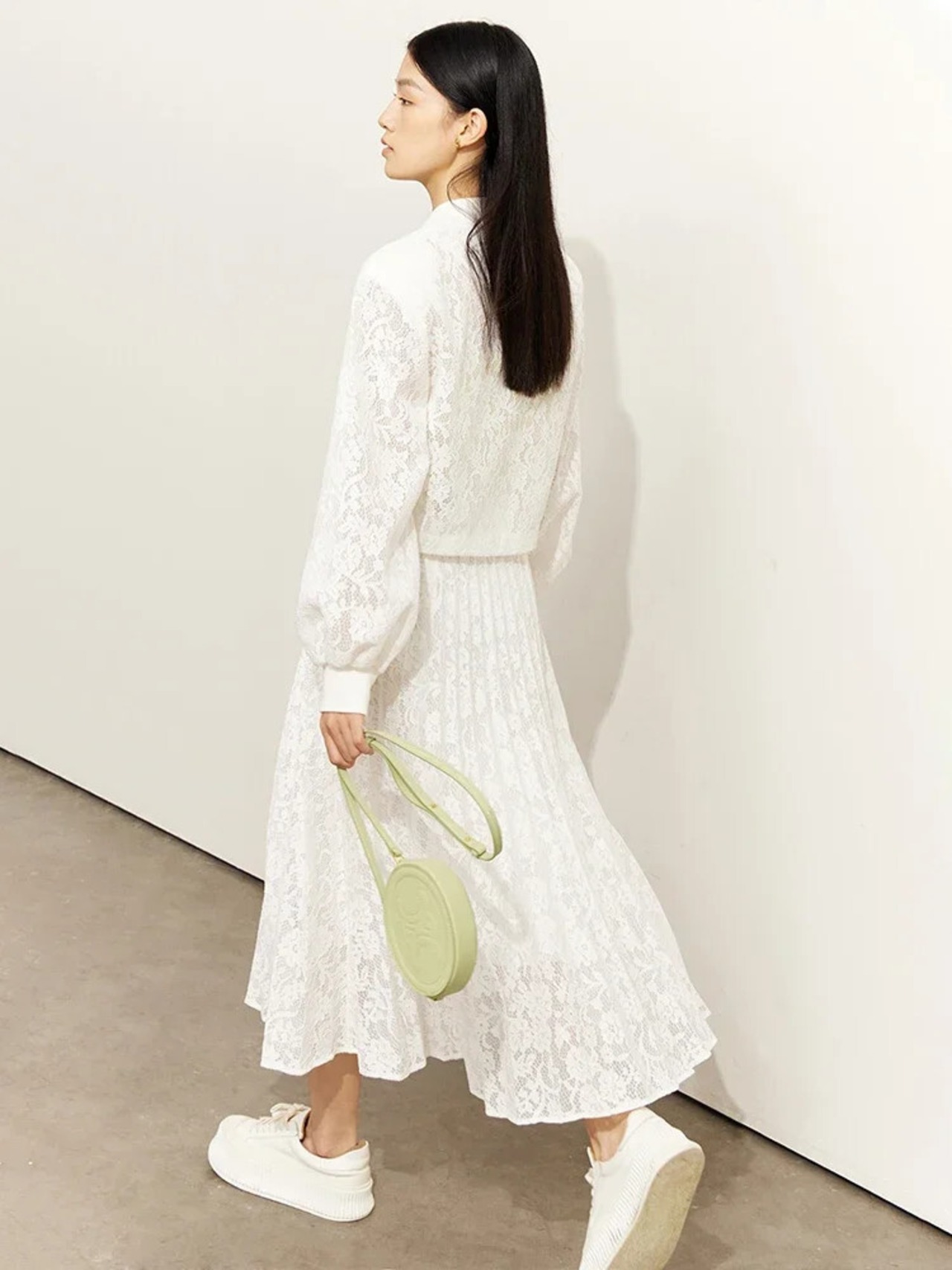 AMII フレンチレースミッドレングスプリーツスカート秋かわいいルーズ A ラインスカートオフィスレディ 12373069 大人ガーリー スウィート キュート カジュアル オータム 秋物 Aライン 会社 学校 通勤や通学にも | twelve