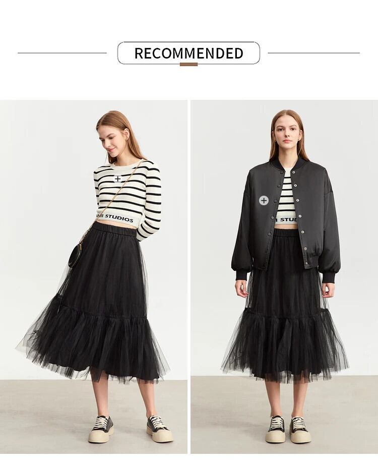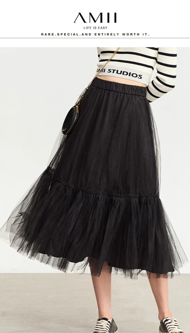 AMII メッシュプリーツスカート秋緩いかわいいロマンチックチュチュミッドレングススカートストリート 12343412 大人ガーリー スウィート キュート カジュアル オータム 秋物 パニエ ペチコート | twelve