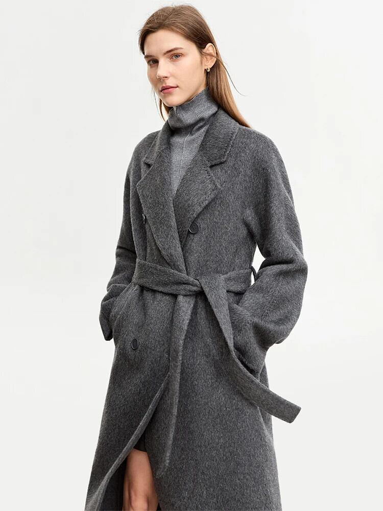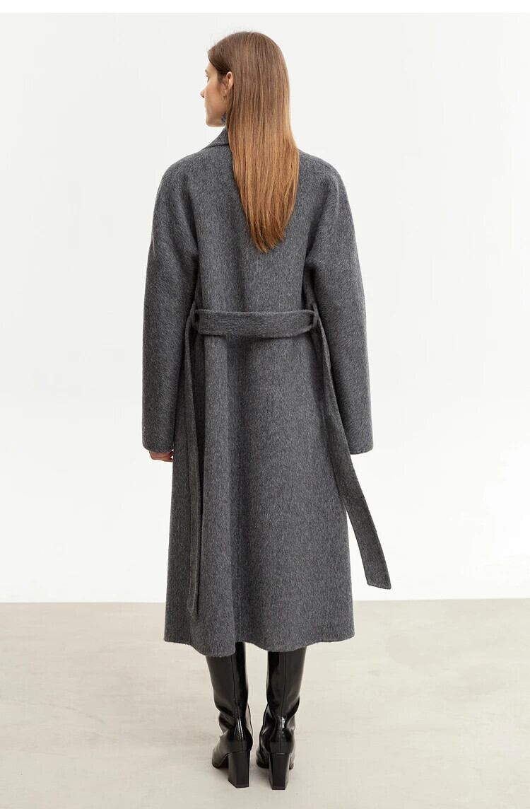 AMII ウィンター ラペルカラー レディース ウール & ブレンド ダブルブレスト ロング ストレート コート バージョン アウター 12344216 冬物