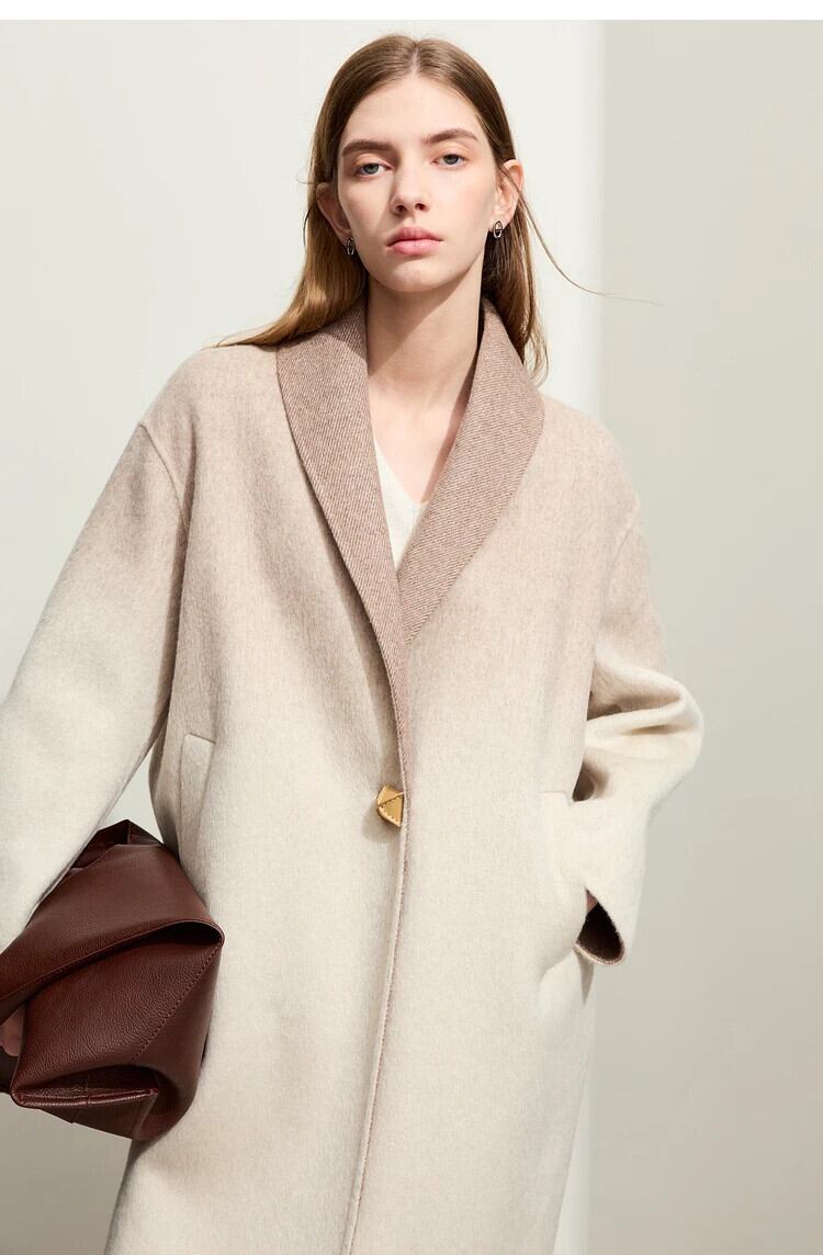 AMII ミニマリストウールコート冬シープウール両面グラデーションシングルボタンロングコート 12344252 ウィンター 冬物