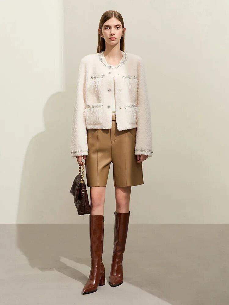 AMII 冬羊カット毛皮高級気質社交家スタイルクルーネックネイルドリル厚いコート 12344231 ウィンター 冬物