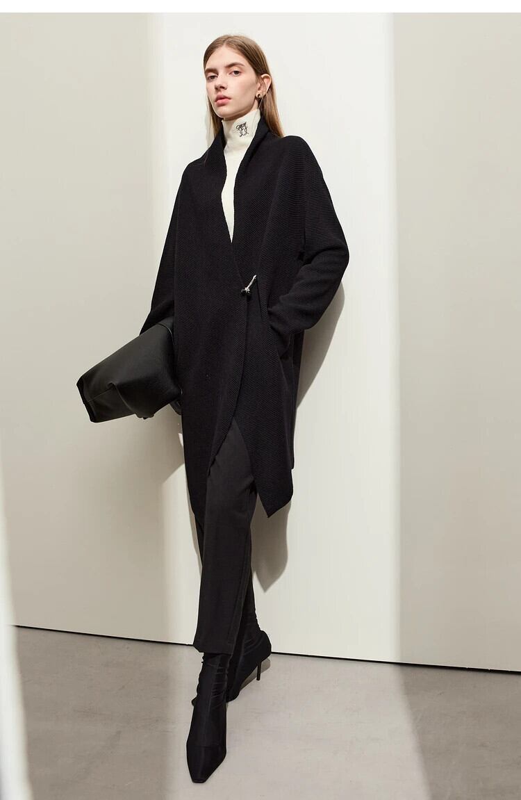 AMII ミニマリスト レディース ウール カーディガン 秋 怠惰ターンダウンカラー ニードル チェーン ポケット ソリッド ソフト セーター 12353101 オータム 秋物 ソリッドカラー | twelve