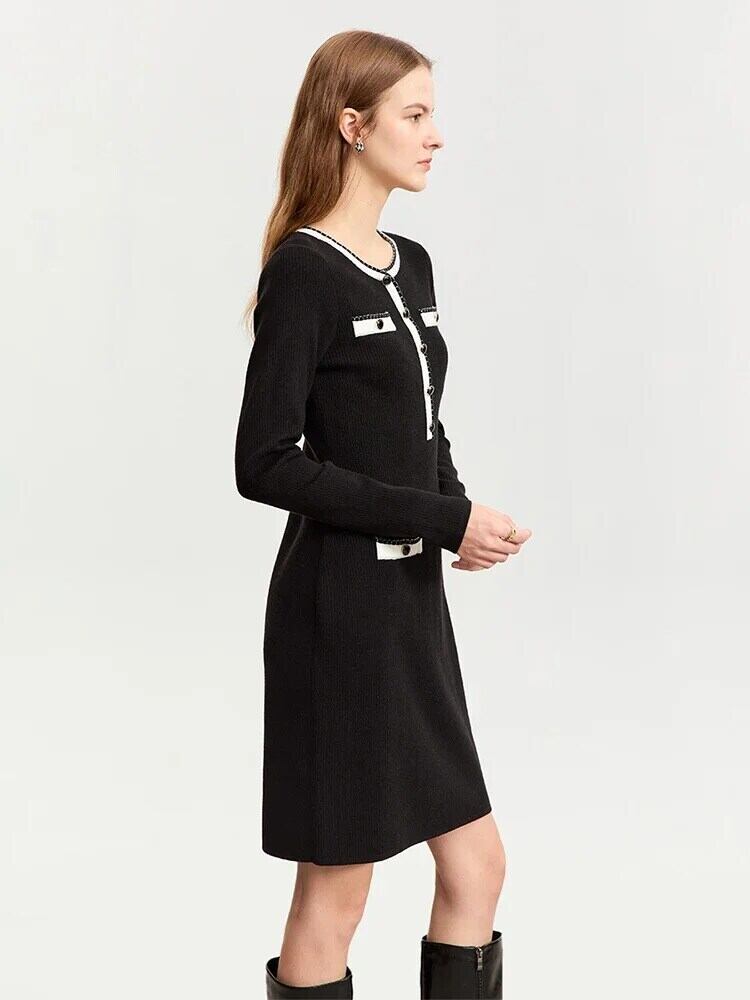 AMII レディース ニットドレス 秋香り ラウンドネック コントラストステッチドレス スリム オフィスレディ 12343445 オータム 秋物 Oネック 会社 学校 通勤や通学にも | twelve