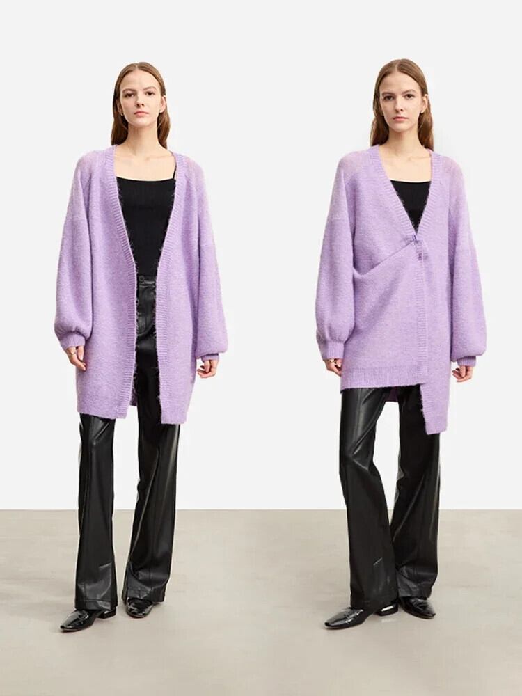 AMII レディース ウール カーディガン 冬 アルパカ ウール V ネック ランタン スリーブ ボタン針 ルーズ ミディ チャンキー セーター 12373073 ランタンスリーブ ウィンター 冬物 Vネック | twelve