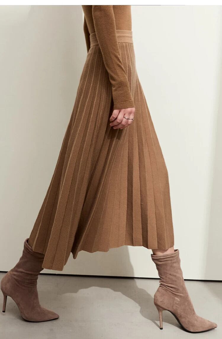 AMII ミニマリスト冬オフィスレディ A ラインスカートニットルーズプリーツソリッドミディトレンディスカート 12344338 ウィンター 冬物 Aライン ソリッドカラー 会社 学校 通勤や通学にも | twelve