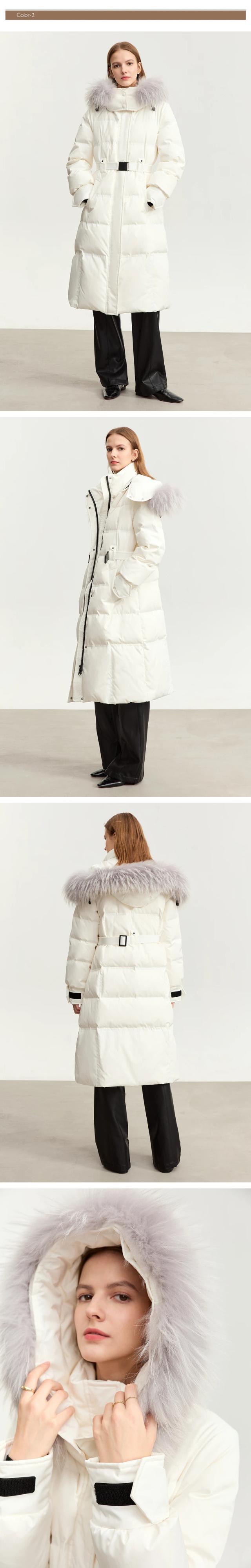 AMII 冬ダウンフグコートアライグマ毛襟取り外し可能帽子ベルト付きスノーパッド入りロングパーカー 12324008 ウィンター 冬物 ハーネス
