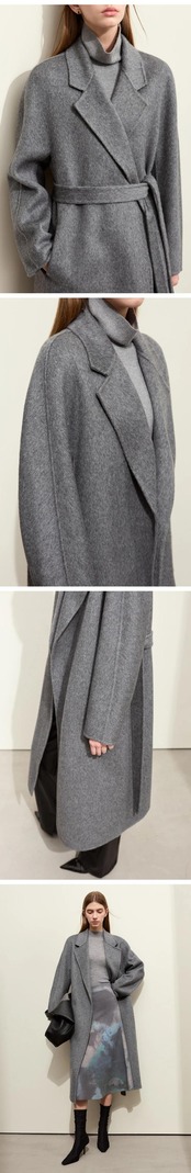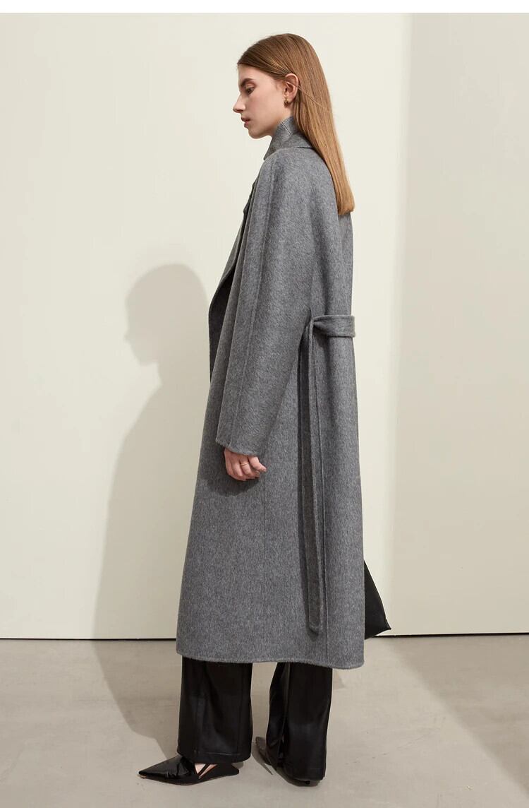AMII ミニマリストウールコート冬シープウール両面ベルトバスローブスタイルロングトレンディ居心地良いジャケット 12344229 ウィンター 冬物 ハーネス