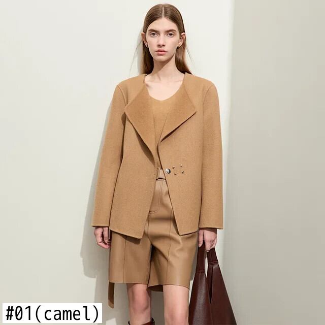 AMII ミニマリスト レディース ウール コート 冬 ラペル ウール ツイル 両面ベルト アウター レディース 12324051 ウィンター 冬物 ハーネス