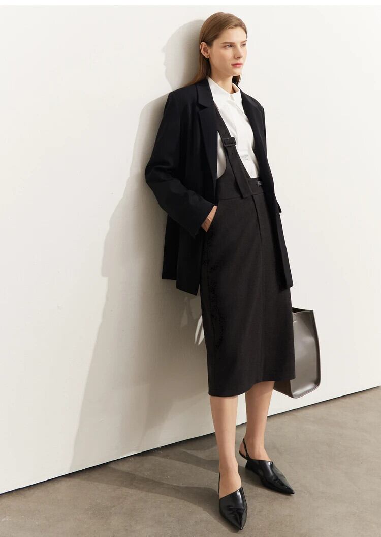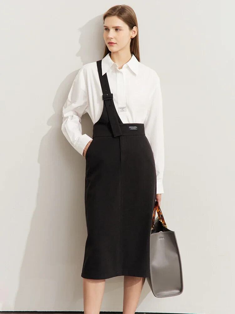 AMII ミニマリズム ワンショルダー スカート 秋 オフィス レディー ポケット スリム ミッドカーフ 気質 A ライン 非対称スカート 12220177 オータム 秋物 Aライン 会社 学校 通勤や通学にも | twelve