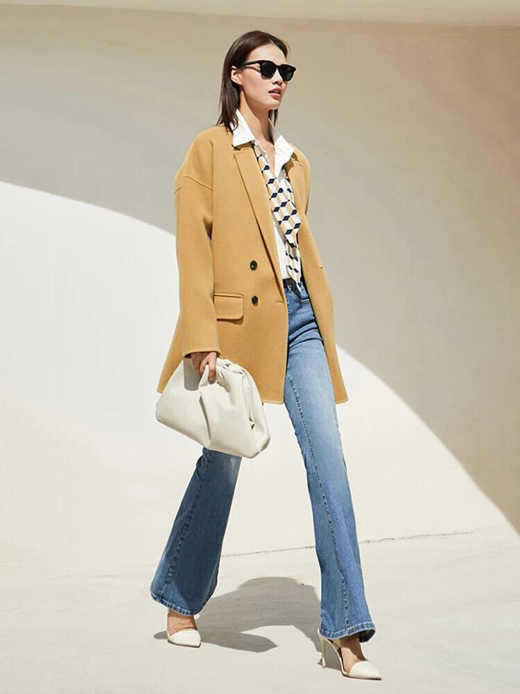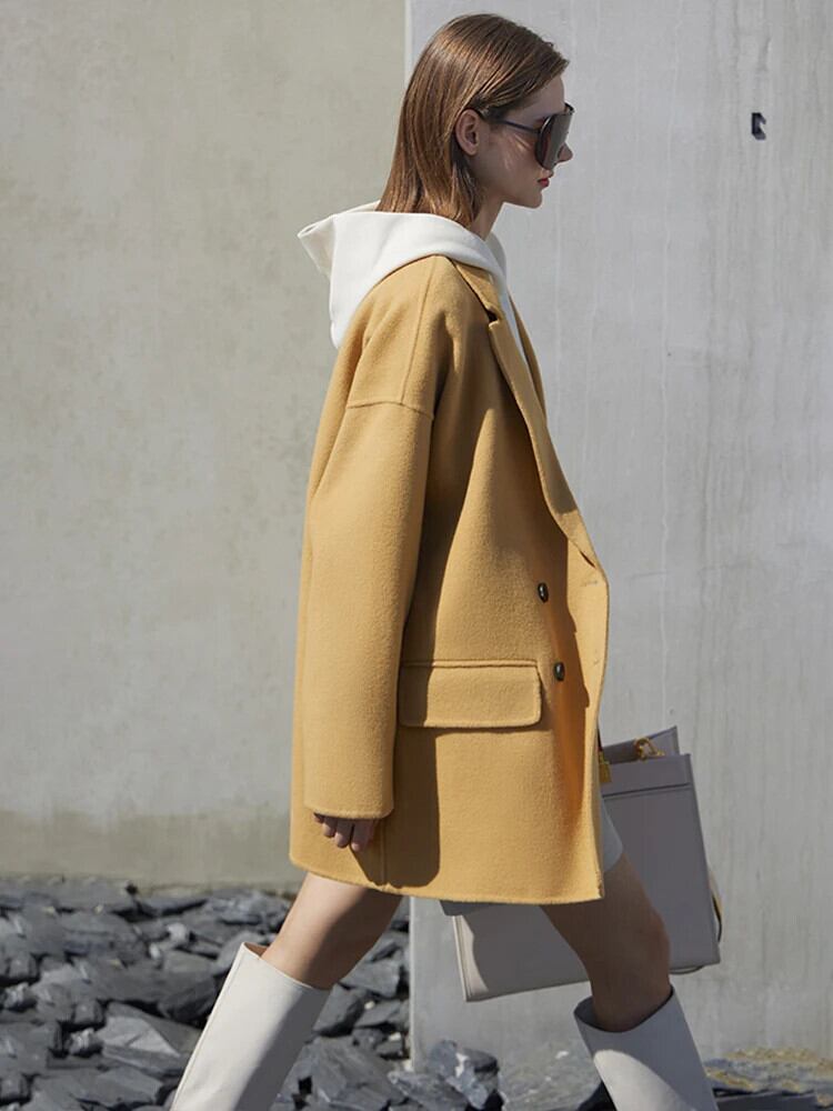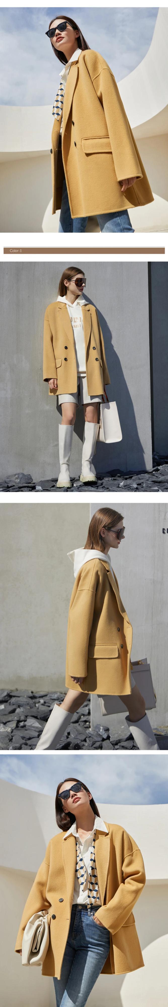 Amii ミニマリズム冬 100% ウールコート両面ジャケットオフィスレディウールブレザーアウター 1475 ウィンター 冬物 会社 学校 通勤や通学にも