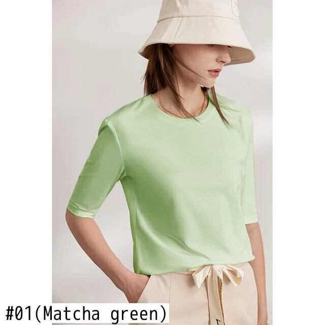 AMII ミニマリズム 2024 春 Tシャツ綿ストレッチ半袖ストレート基本オフィスレディトップス 12412016 コットン ハーフスリーブ スプリング 春物 ソリッドカラー 会社 学校 通勤や通学にも | twelve