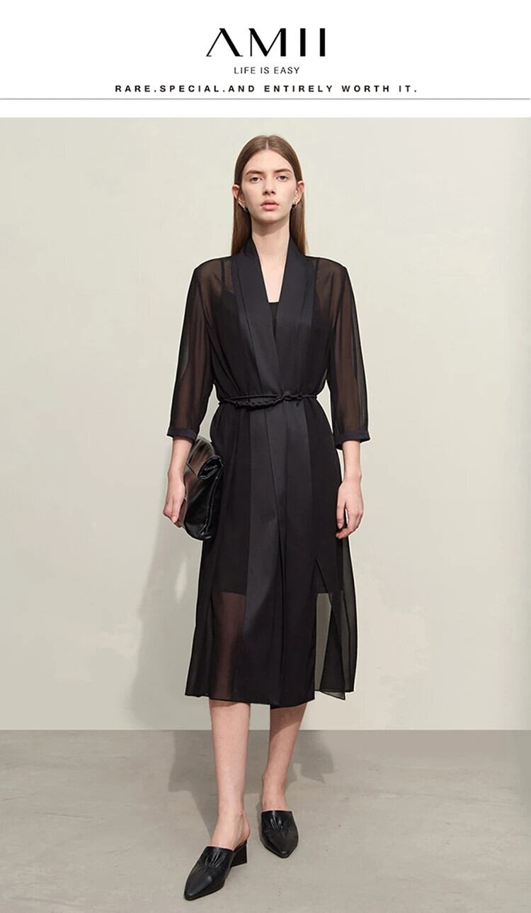 AMII ミニマリズム 2024 ラップコート春中国風 V ネックネクタイ桑ジャケットベルトルーズブラウス 12441303 スプリング 春物 ハーネス Vネック シルク