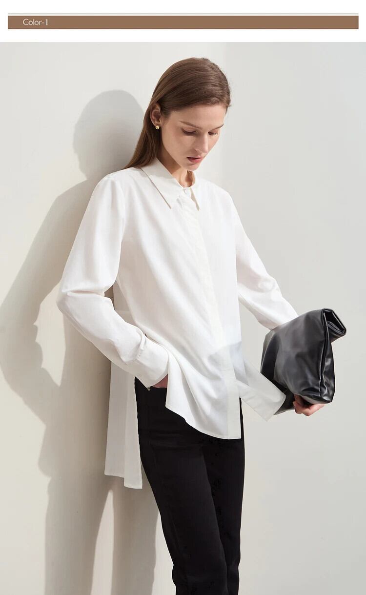 Amii ミニマリズム ミッドレングス シャツ レディース 2024 春 ソリッド スリム ショート バック ロング サイド スリット レディース シャツ & ブラウス 12441346 スプリング 春物 ソリッドカラー | twelve
