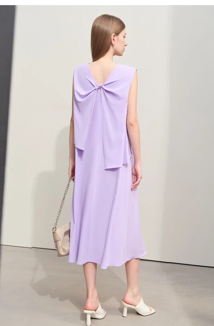 Amii ミニマリズムドレス 2024 夏ソリッドノースリーブロングルーズオフィスレディ O ネックドレス 12452007 サマー 夏物 Oネック ソリッドカラー 会社 学校 通勤や通学にも | twelve