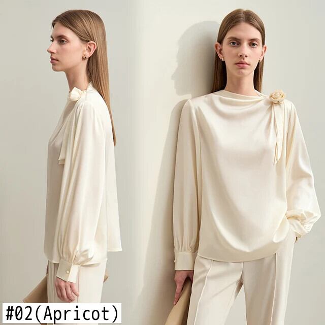 Amii ミニマリズム 2024 春 レディース ブラウス ライト ラグジュアリー ソリッド スイングカラー 長袖 マイクロストレッチ トップス レディース 12421101 ロング スプリング 春物 シルク ソリッドカラー | twelve