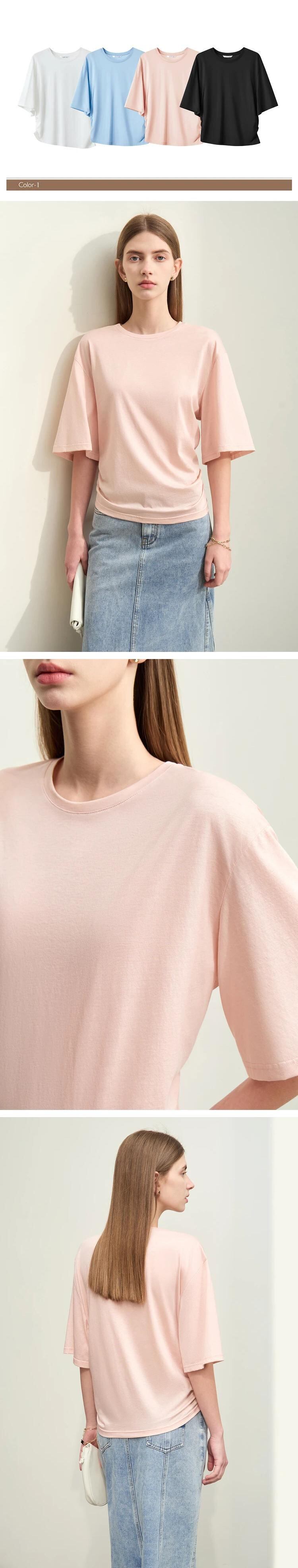 Amii ミニマリズム レディース Tシャツ 2024 夏 ラウンドネック プルオーバー 綿 やや伸縮性 ゆったり トップス 12452062 コットン エラスティック サマー 夏物 Oネック | twelve